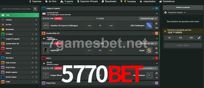 O 5770bet oferece uma grande seleção de opções de apostas em e-sports com probabilidades competitivas